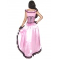 Součástí kostýmu jsou růžové šaty s černým lemováním a korzet.