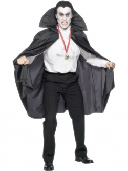 Luxusní černý upíří plášť 114cm dlouhý s vysokým stojacím límcem z Vás udělá neodolatelného upíra.